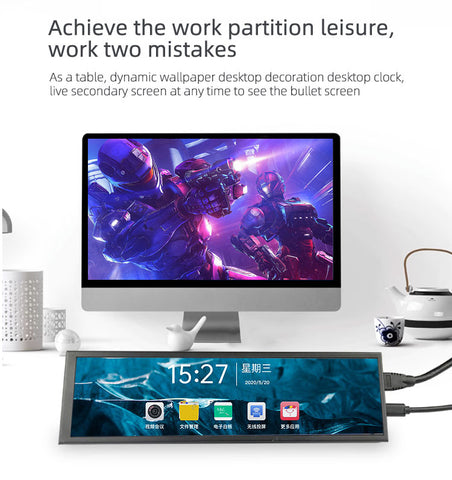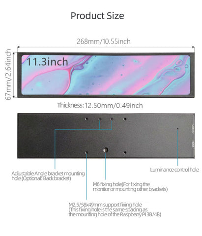 11.3 Inch Stretched Bar Monitor 480x1280 H-DMI Interface IPS Panel Portable Monitor.