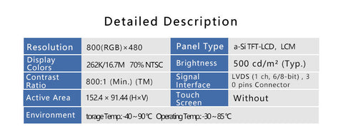G070ACE-L01 7 Inch LVDS Panel TFT LCD 800x480 LCD Driver Board Display