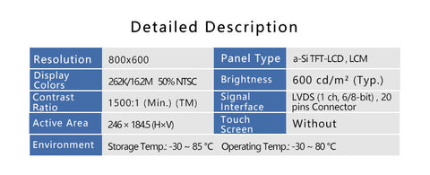 G121S1-L02 12.1 Inch LVDS 20 Pins Interface 800x600 Outdoor LCD Screen Panel