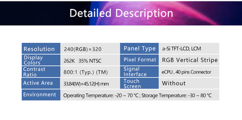 Ortustech COM22H2P69ULC 2.2 inch 240x320 LCD Screen Display For Handheld Device